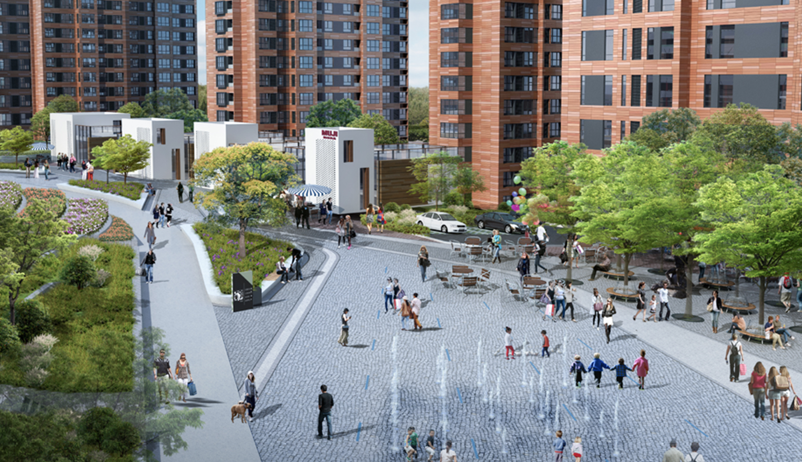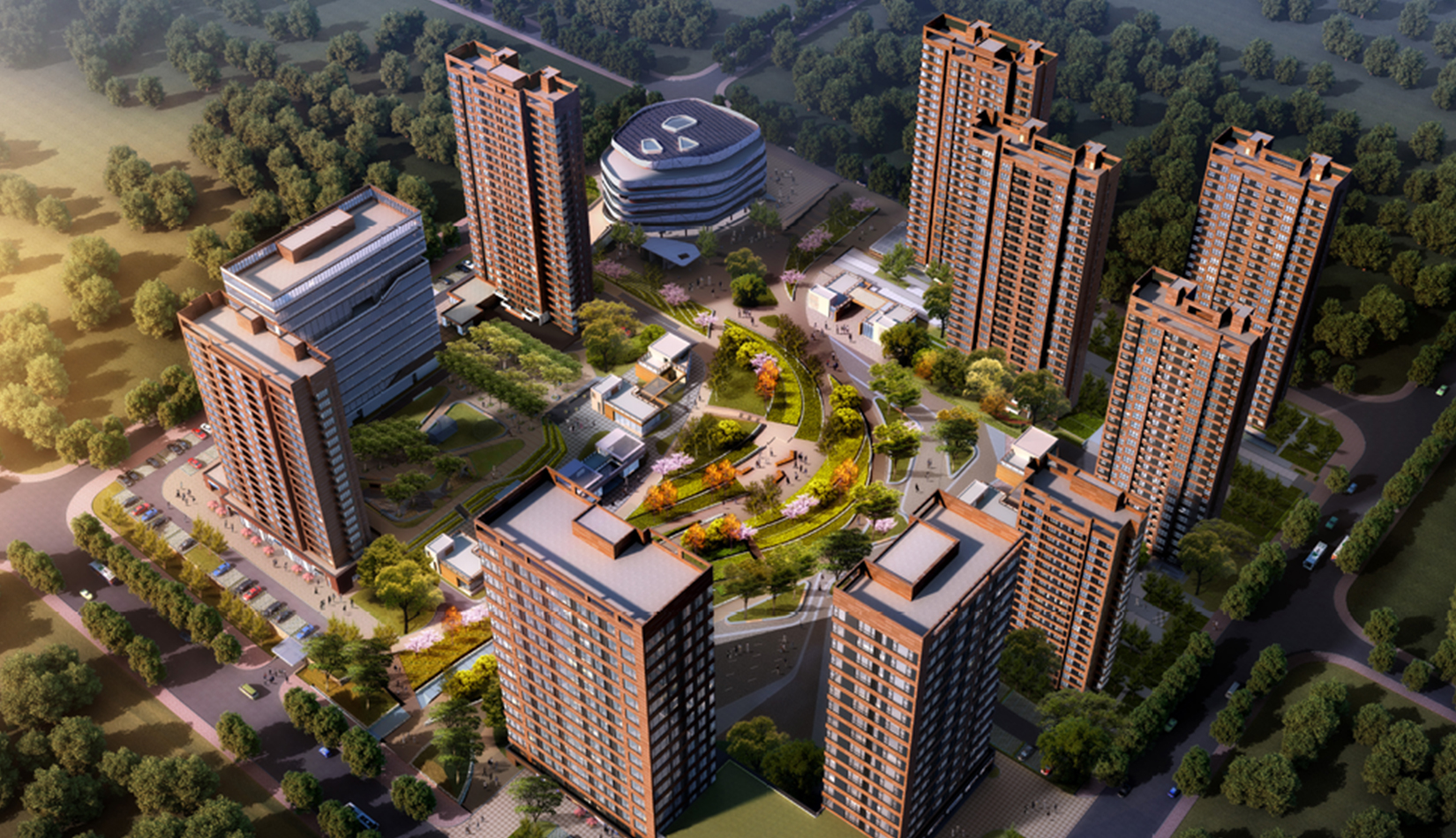規(guī)劃布局在現(xiàn)有景觀基礎(chǔ)上進行延伸,在重要景觀帶上設(shè)置公共功能,造型與現(xiàn)有德國中心呼應(yīng),靠近中間廣場的混合住宅設(shè)計中融入綠色理念,既達到景觀帶到建筑群組的滲透,又達到建筑內(nèi)部的滲透,真正做到人與自然融合,建立了一條“城市紐帶”,利用周邊現(xiàn)有資源(河洛埠水庫),通過連橋、綠地和廣場將不同功能,不同高度的公共區(qū)域串聯(lián)起來,從而形成一個結(jié)構(gòu)明晰,功能復(fù)合又互通互聯(lián)的文化交流城。