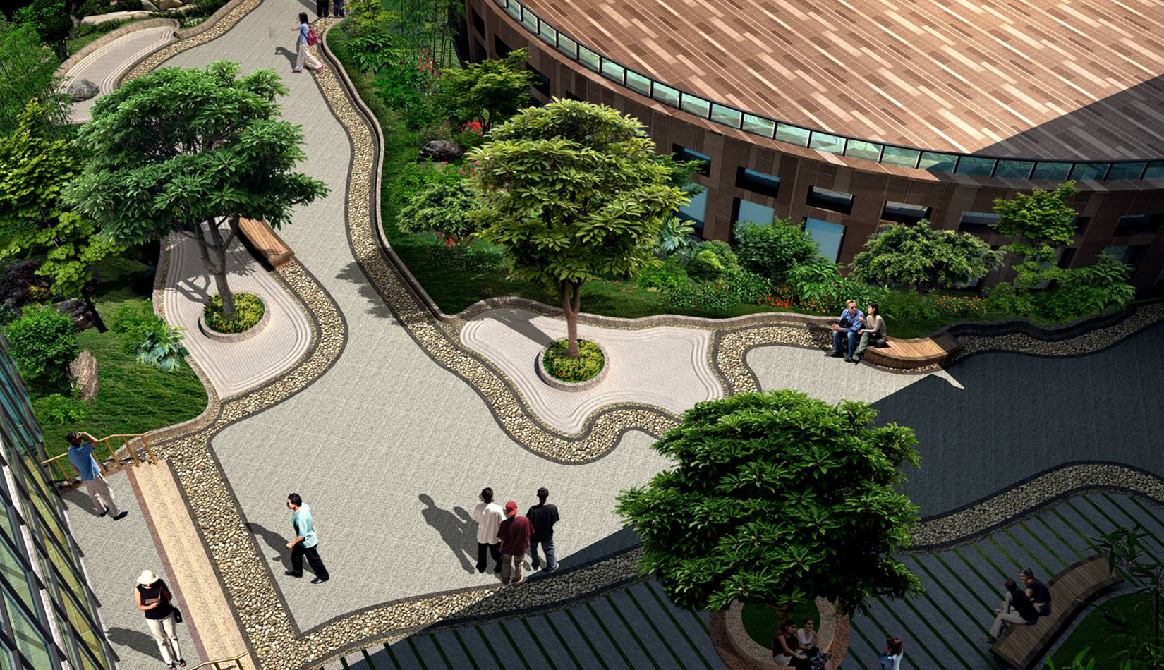 以鳳凰為設(shè)計(jì)思想來源,建筑為骨,環(huán)境為翎,合理組織前廣場的空間結(jié)構(gòu)。