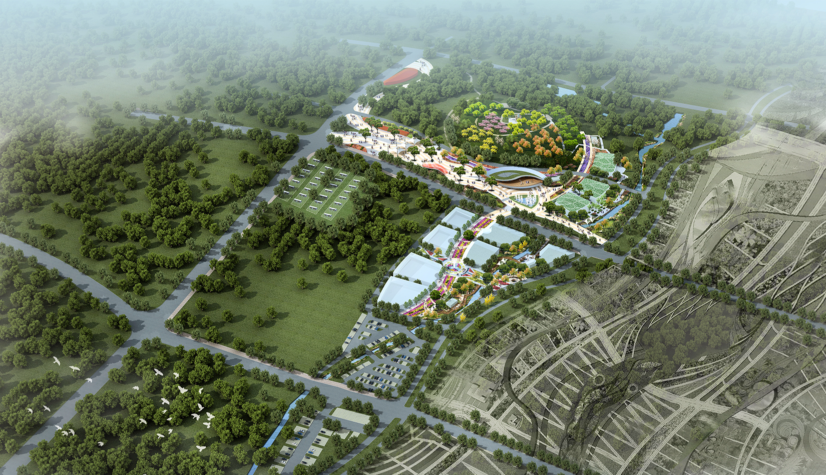 本案設(shè)計(jì)構(gòu)思“一花一世界”。月季、玫瑰,都屬于薔薇科薔薇屬的植物,但他們屬于不同的種。