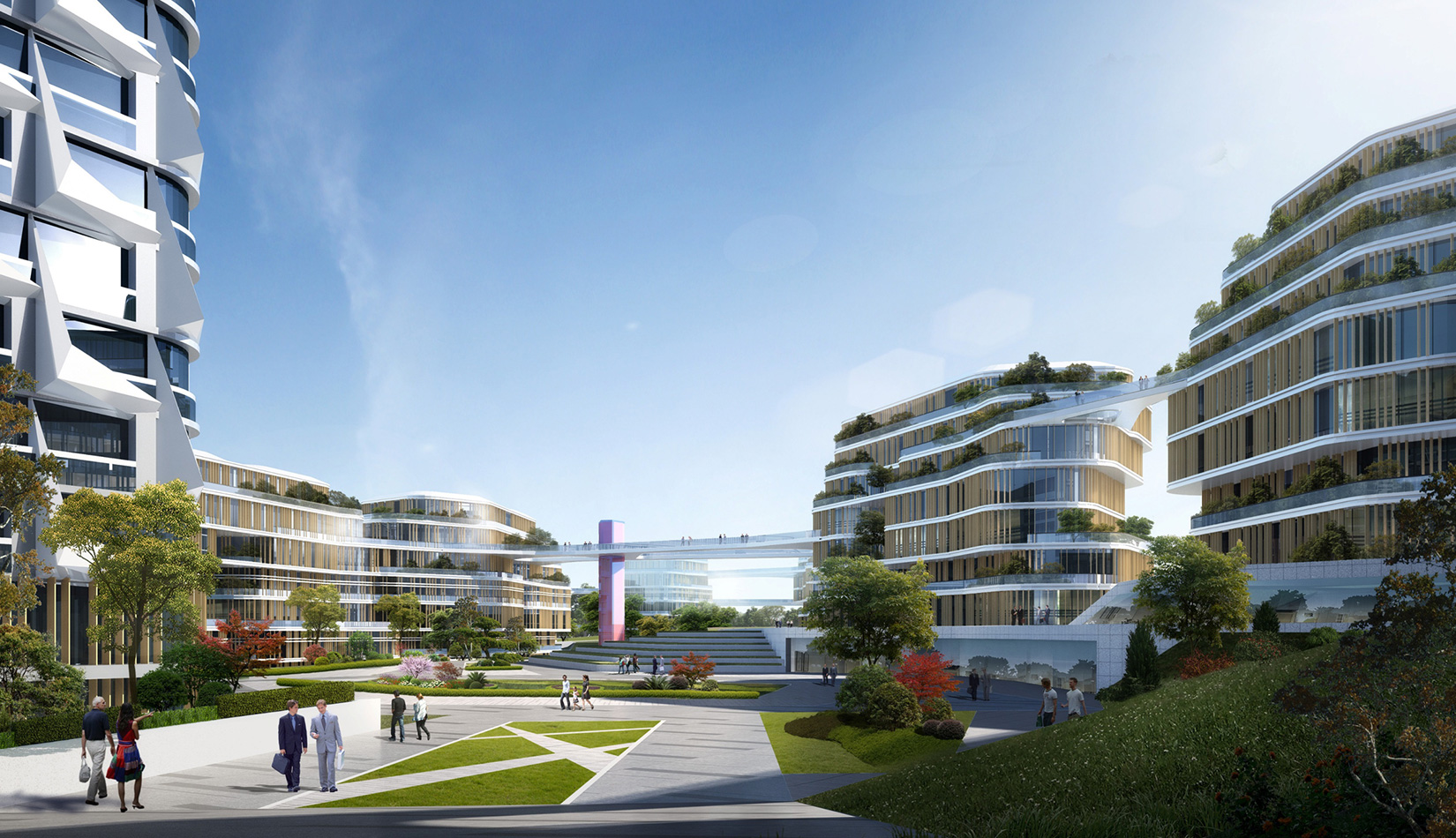 該項目以“流動的星云”作為設計理念,順應地形走向,溝通“山”“水”關系。