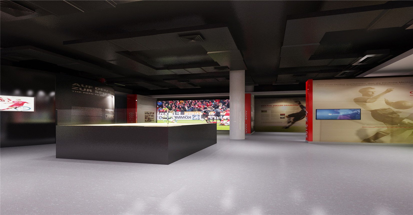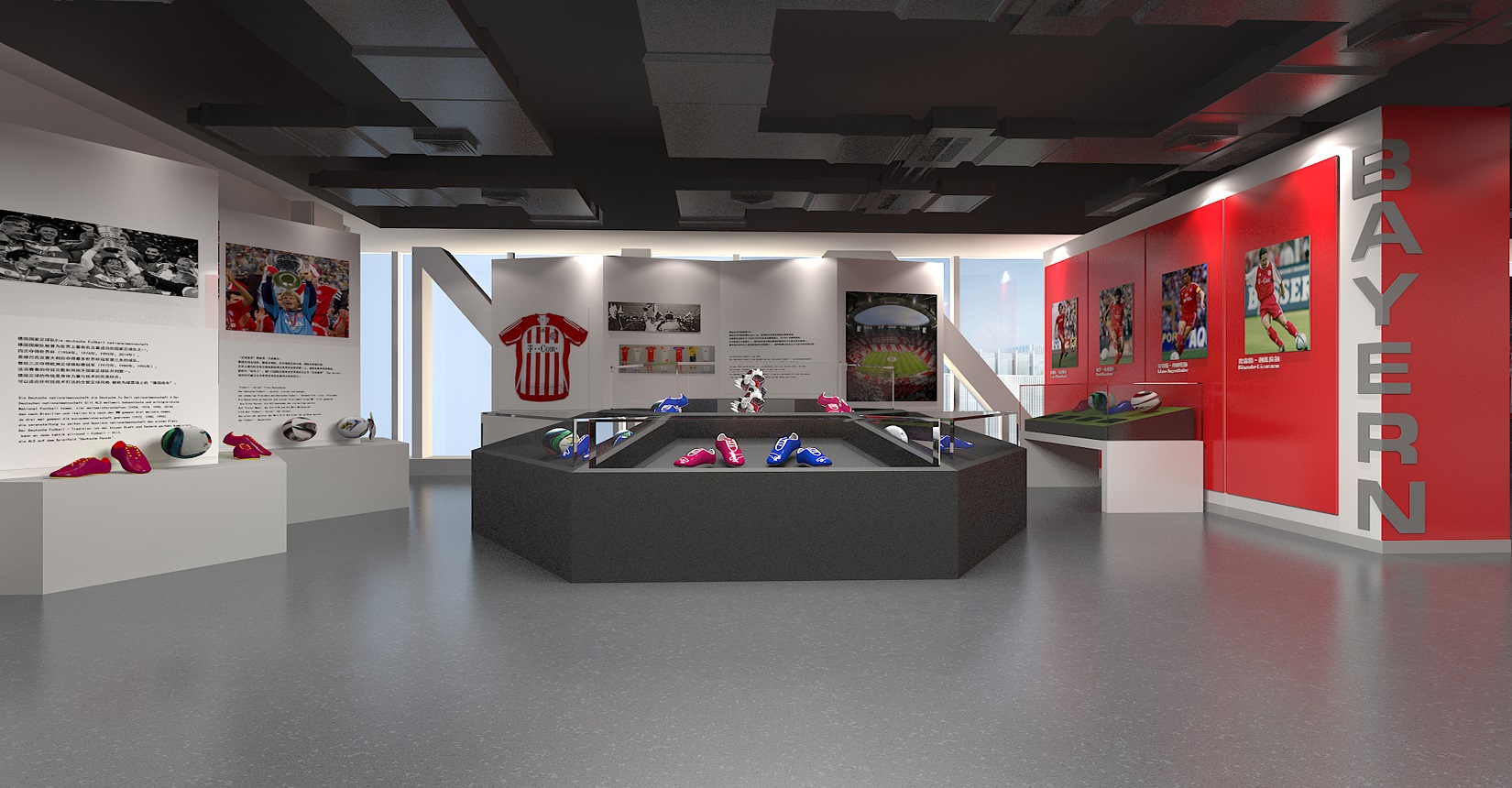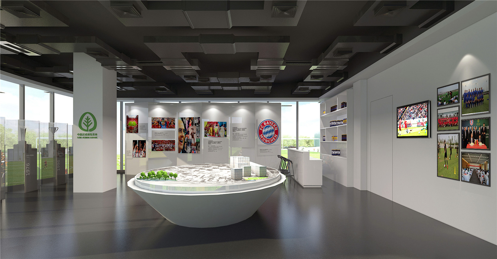 本次設(shè)計(jì)方案運(yùn)用后現(xiàn)代主義風(fēng)格的設(shè)計(jì)手法來(lái)展現(xiàn)中德兩國(guó)足球運(yùn)動(dòng)的歷史及發(fā)展。迎合當(dāng)前環(huán)境下中德兩國(guó)在足球產(chǎn)業(yè)方面進(jìn)行的交流與合作,是中德體育促進(jìn)足球培訓(xùn)、商務(wù)推廣的窗口平臺(tái),向人們展示足球精神的人文內(nèi)涵與魅力。